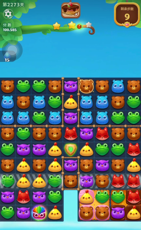 面对遍布的毒液,开局的第一步行动往往决定了后续的局势。由于直接消除动物可以同时清除毒液,因此在关卡开始时,应优先寻找并消除屏幕下方那些可以直接进行三消或连消的动物。这样做能迅速为金豆荚的下落清理出最初的通道,并有效遏制毒液在早期就大面积扩散,从而避免后期屏幕被毒液占满导致无步可走的尴尬局面。在清理下方空间的同时,目光也需要关注关卡上方可能存入口或特殊布局,为后续生成和使用特效打下基础。每一步消除都要尽可能服务于清毒和开路这两个核心目的。